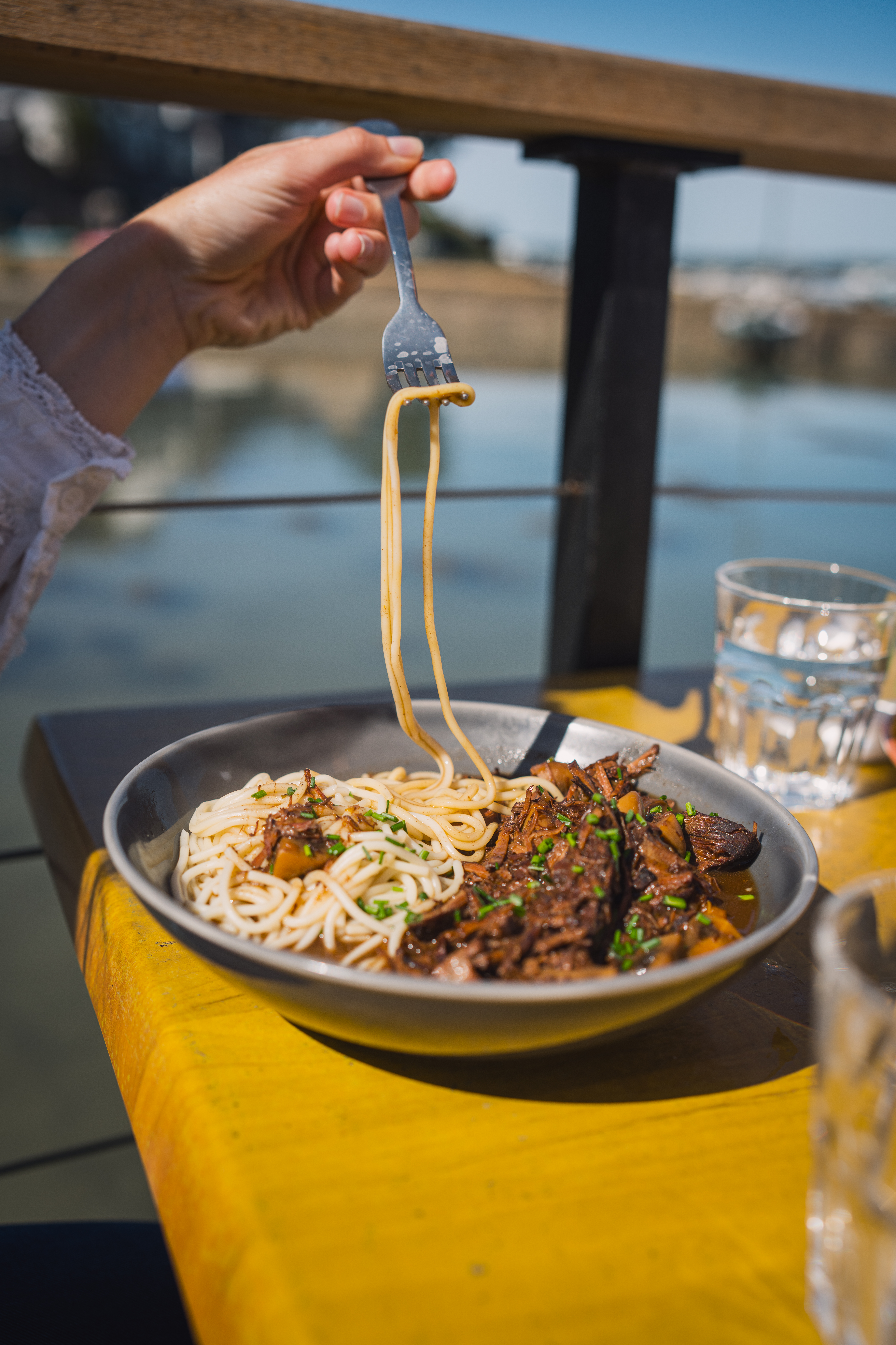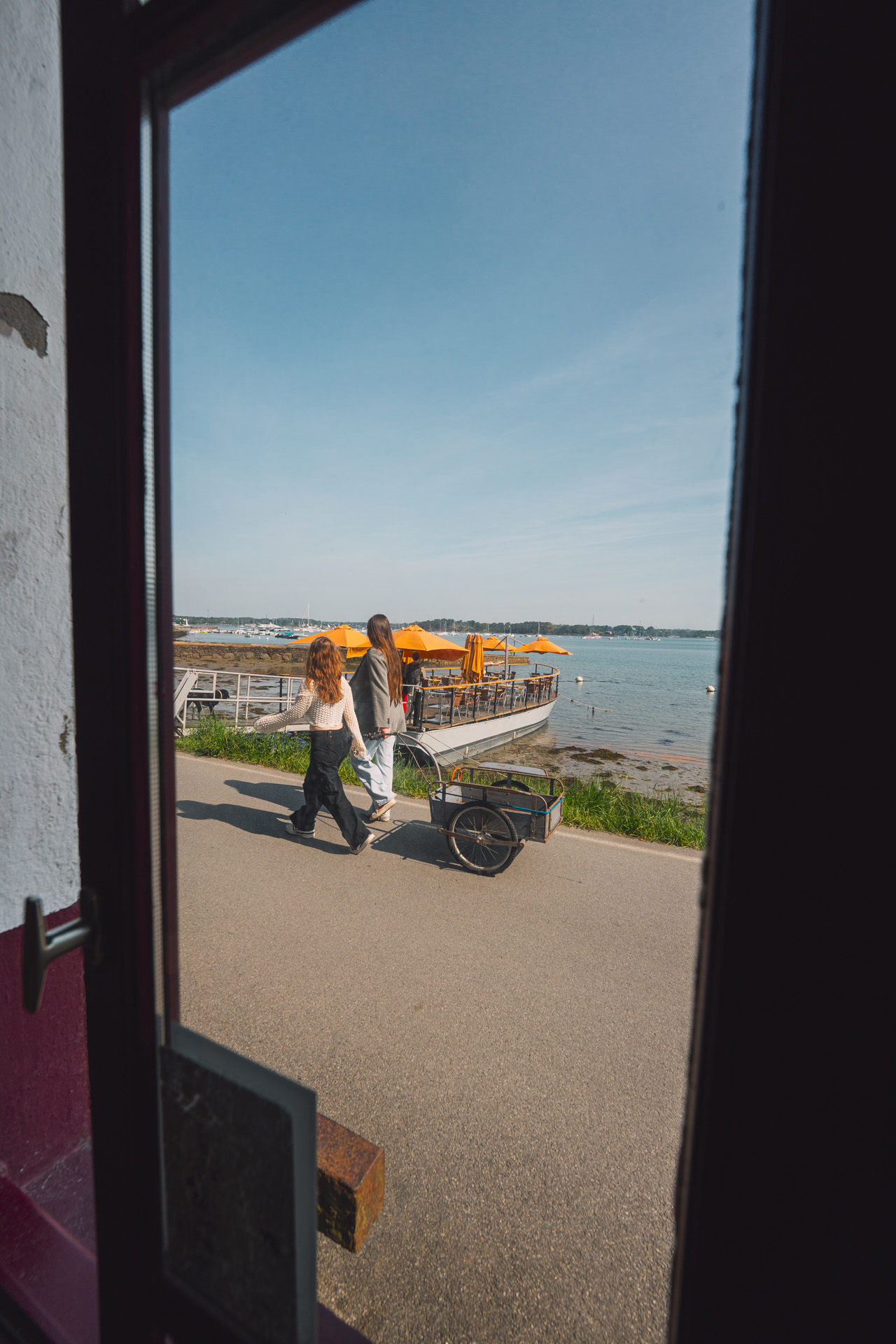 En quittant le bateau, le restaurant se situe à 7min à pied (400m) en longeant la côte vers le bourg.